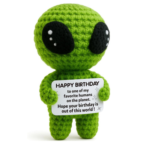 ของขวัญวันเกิดสำหรับผู้ชายหรือผู้หญิงโครเชต์ตุ๊กตาเอเลี่ยนแฮนด์เมดพร้อมวันเกิดสำหรับเพื่อนวัยรุ่นเพื่อนร่วมงาน Sci-Fi คนรัก-ปาร์ตี้
