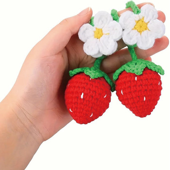 อะไหล่รถยนต์กระจกมองหลังโครเชท์สตรอเบอร์รี่น่ารักอุปกรณ์เสริมกระจกมองหลังแฮนด์เมดสำหรับผู้หญิงและเด็กผู้หญิงสีชมพู